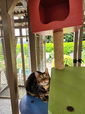 Toph is still getting comfortable but likes watching the kitties from her cozy condo!