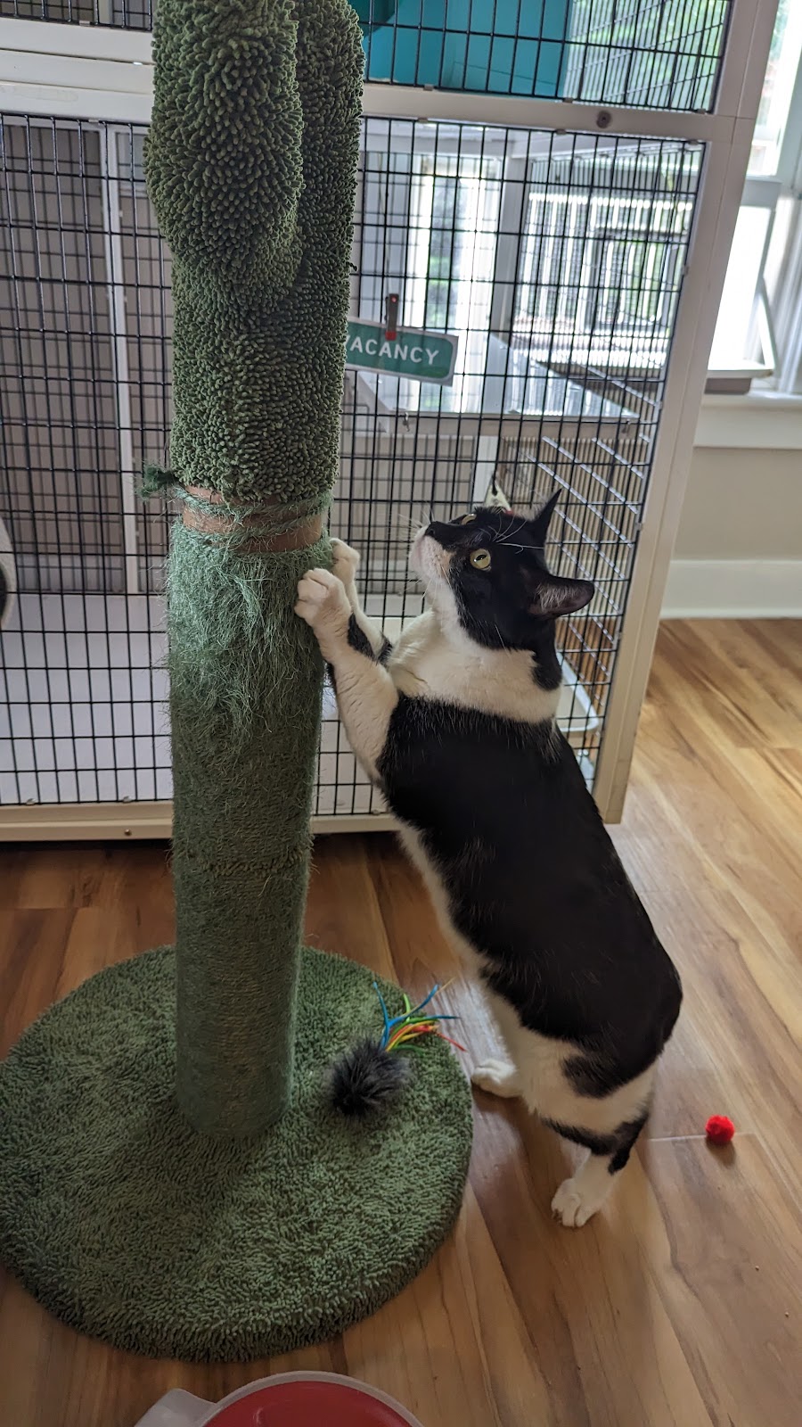 Panther getting some attention and scratch time and Oreo discovering the window boxes