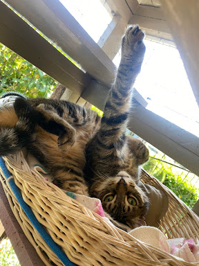Celia likes to spend her days in the window box, it's the best view in the house!